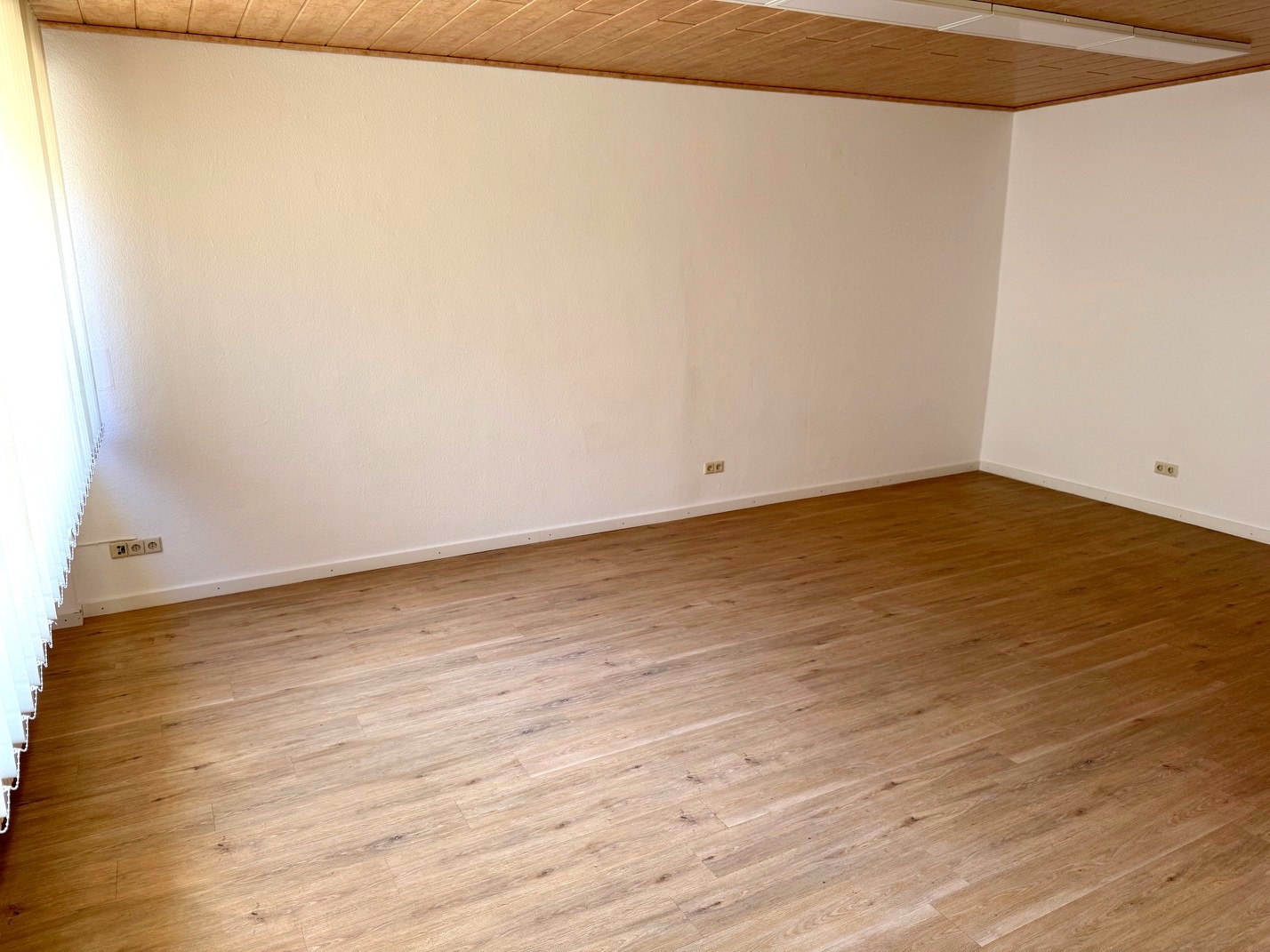 Raumaufteilung: Wohnzimmer, Schlafzimmer, Büro, Esszimmer, Küche, Bad mit Dusche, sep. WC, Flur, Balkon