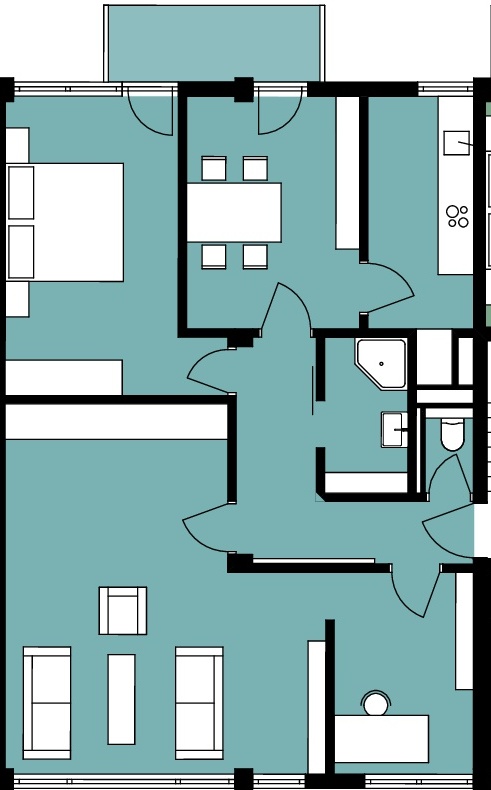 Bauartbedingt (Pfahlbausystem) sind die Innenwände relativ flexibel gestaltbar, da die Betonstützen die tragenden Teile sind.
