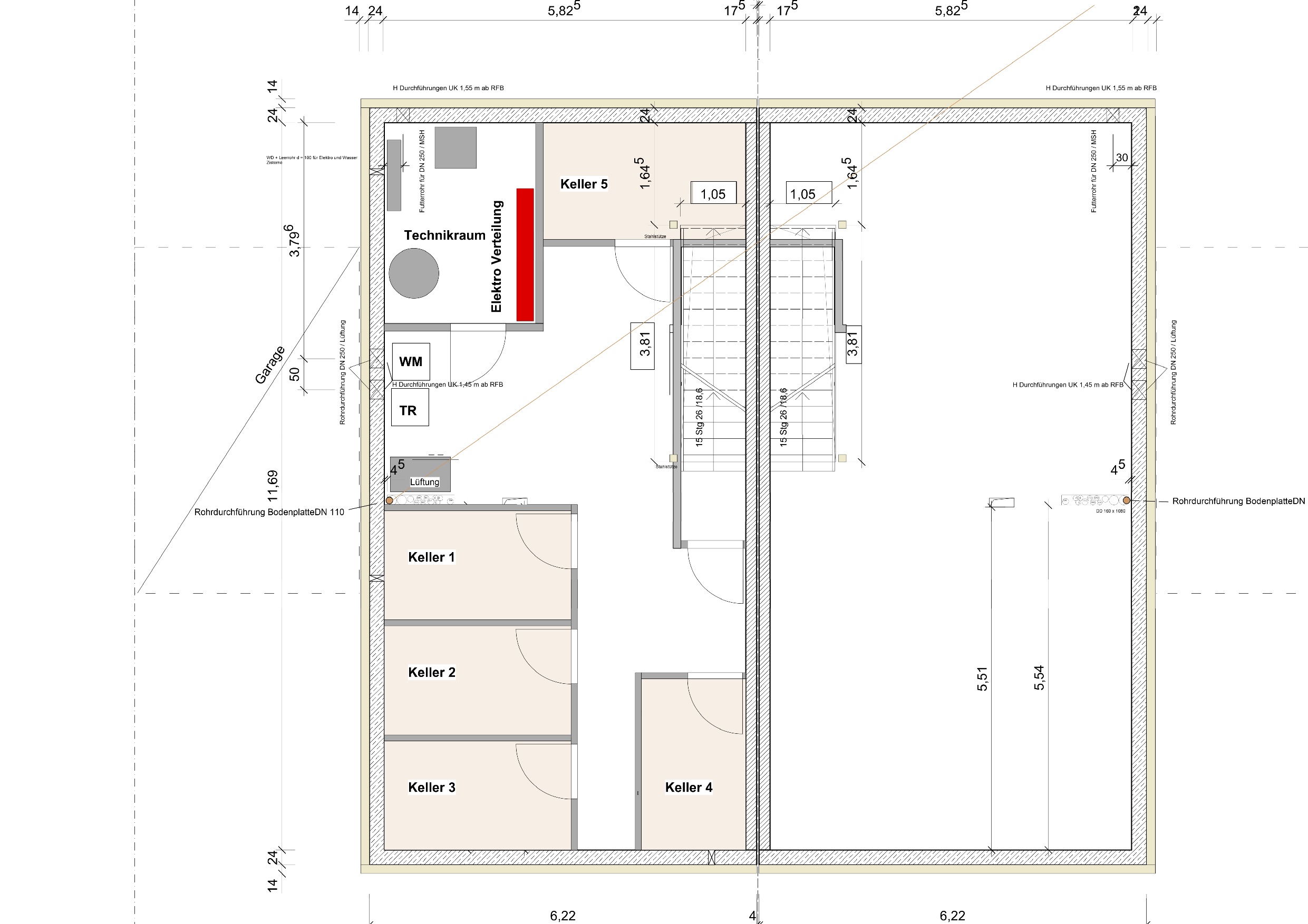 UG: 5 Kellerräume, Wasch- und Trockenraum, Technikraum